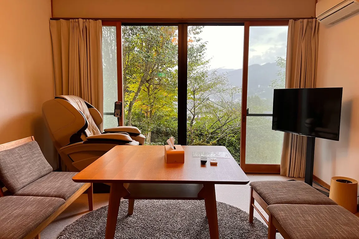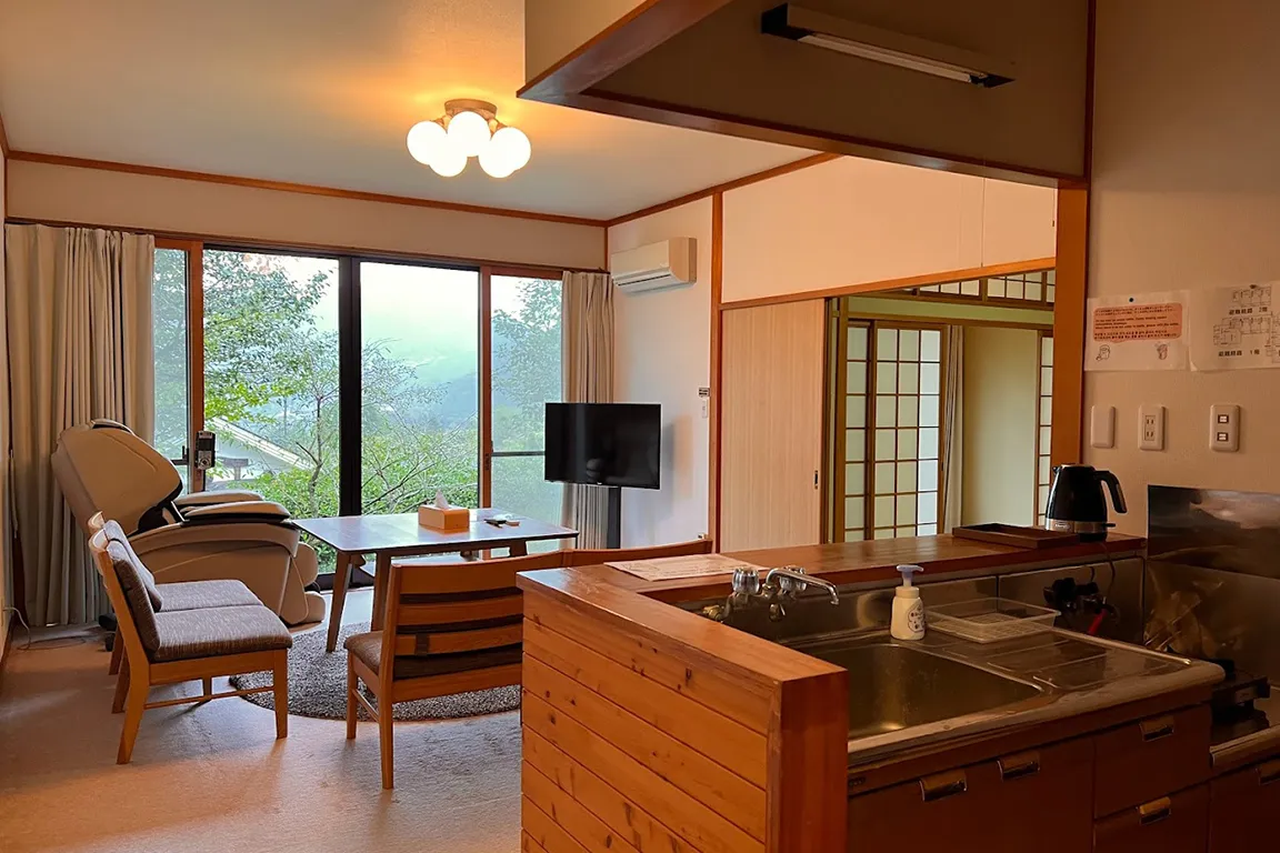 くつろぎの空間由布岳を望む開放感、畳のぬくもり、暮らすように滞在できる快適さ――